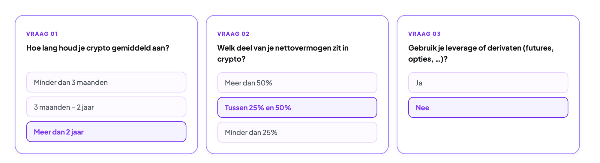 De calculator stelt je drie vragen om je investeerdersprofiel te bepalen: